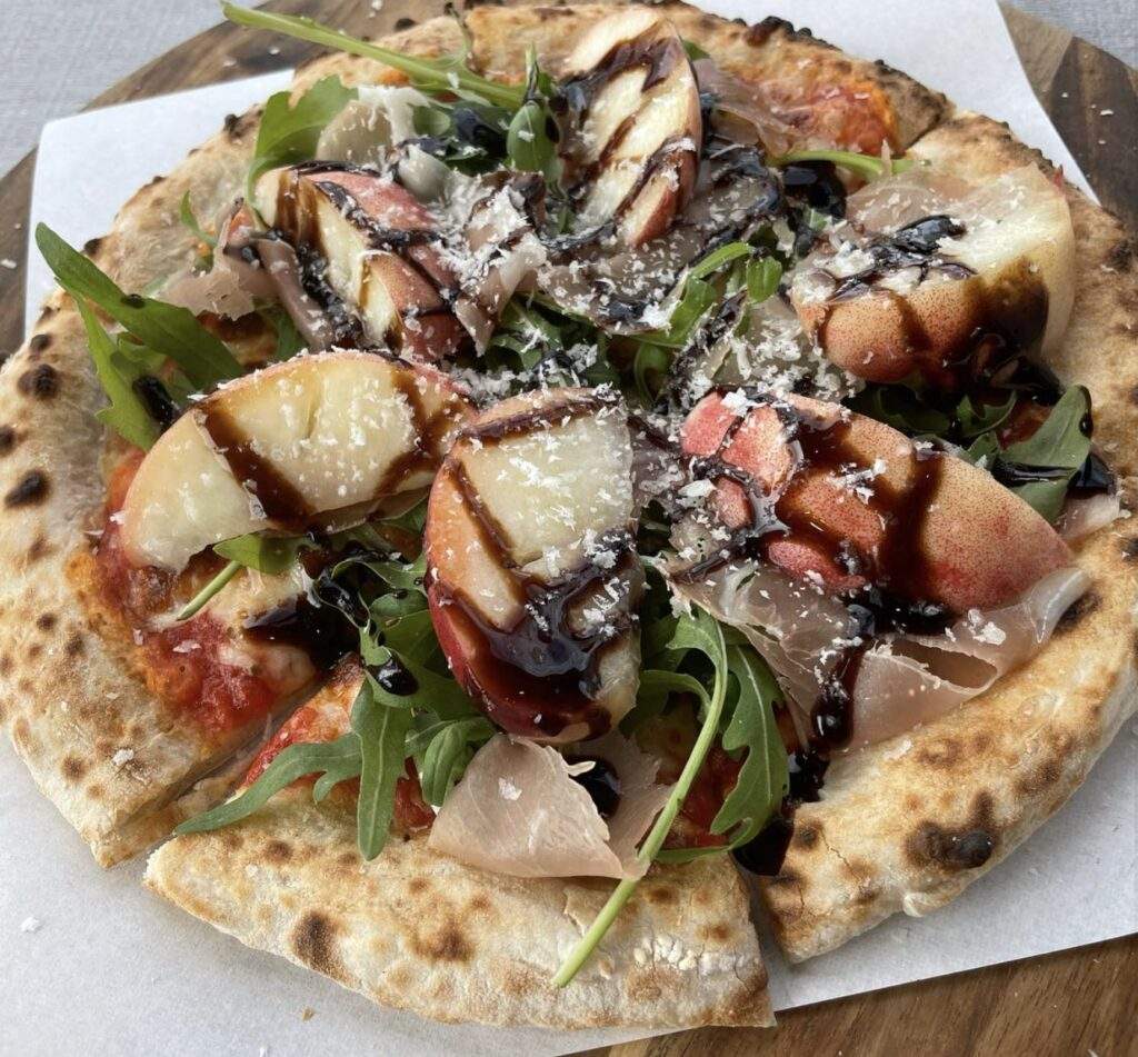 披薩的部分,除了大家非常熟悉的瑪格莉特、夏威夷 BBQ 等口味,還有甜的披薩可以選,包含巧克力棉花糖、肉桂焦糖蘋果。