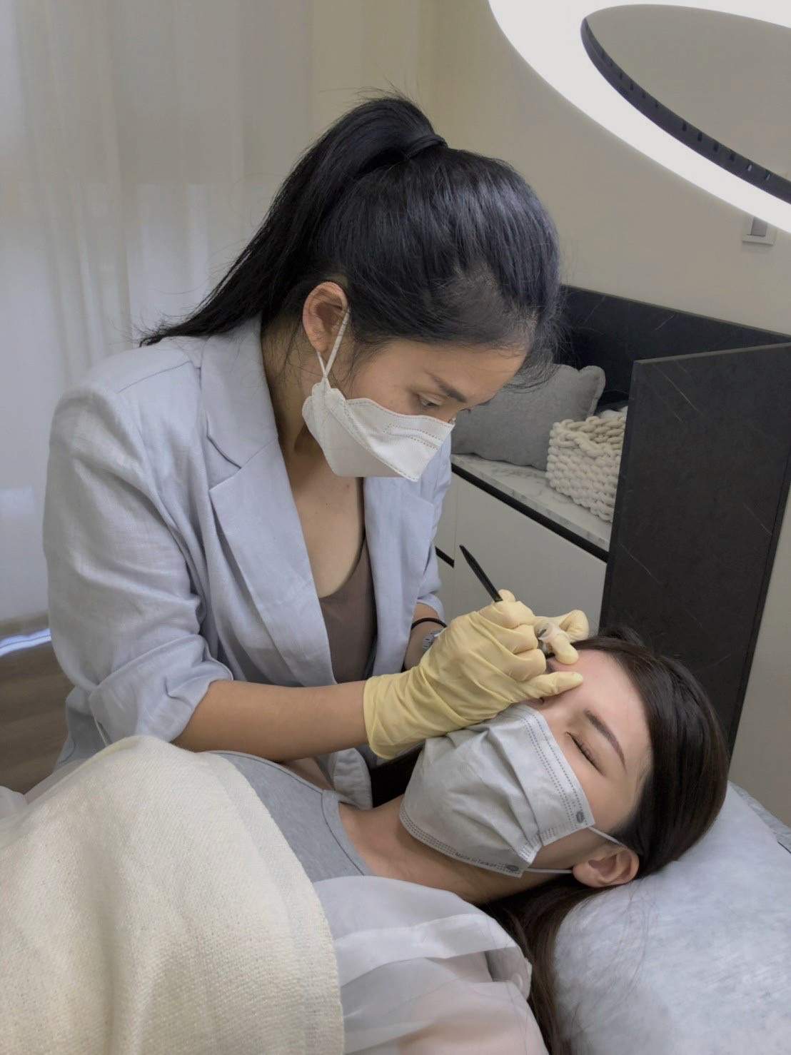 霧眉師很健談、親切,施作前,會先幫你敷麻藥,過程中也會反覆詢問會不會痛。